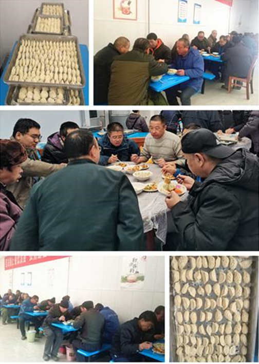 午饭时间到了,刚包的带热气饺子从锅里新鲜出炉,欢快地跳进盘子里。工作一上午的员工们纷纷来到食堂就餐,一看午餐是饺子,个个喜笑颜开。有的员工感慨地说:“上班也能过冬至,吃饺子喽,这饭吃得暖和!”