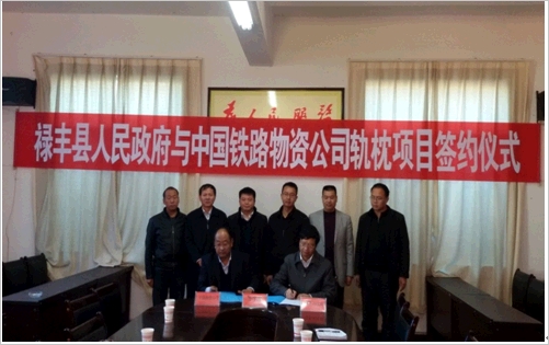 2015年2月12日,工业集团副总经理蒋毅带队,由平顶山轨枕公司总经理秦建军、党委书记黄有松、副总经理孙文生和副总工程师张向辉组成领导小组,同云南禄丰县县委、县政府、禄丰广通物流园区、广通镇开展不同层级的会谈,并于2月14日在广通镇人民政府进行“项目签约仪式”,秦总和杨县长分别代表中国铁路物资和禄丰县人民政府进行项目签约。