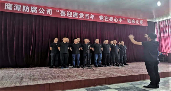 鹰潭防腐公司开展了“喜迎建党百年 党在我心中”歌咏比赛。比赛分为团体赛和个人赛,鹰防公司员工迎风高唱,激情饱满,赛场气氛热烈高涨,展现了鹰潭防腐公司全体员工团结向上,党在我心中,永远跟党走的爱党、爱国、爱企的精神风貌。