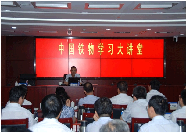 "中国铁物学习大讲堂”是股份公司为培育中国铁物学习型企业文化氛围,深化全系统"凝心聚力,同舟共济”主题学习研讨活动,强化全员培训举办的系列专题讲座。8月27日下午,股份公司举办了大讲堂第一期讲座,邀请全国政协委员、政协经济委员会委员贾康教授作了题为"国家经济新常态:形势、政策、困难和国企改革”专题讲座。股份公司党委书记、董事长戴和根,党委副书记、执行董事、总裁申兆军等党委常委、高管和总部全体员工,国海广场办公区的二级公司领导班子成员等在主会场参加学习,各二公司领导班子成员和员工在各单位分会场收看。股份公司职工董事、工会主席赵辛受公司领导委托主持此次学习。