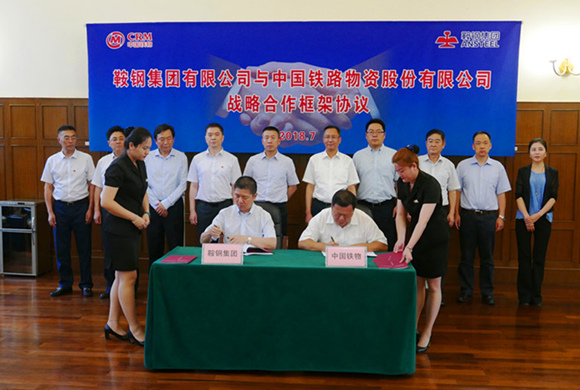7月4日下午,中国铁物党委副书记、总裁申兆军在鞍山会见鞍钢集团党委副书记、总经理姚林,并代表双方企业签署战略合作协议。中国铁物党委常委、副总裁徐增堂,鞍山钢铁党委常委、副总经理李镇、徐世帅参加会见并出席签约仪式。