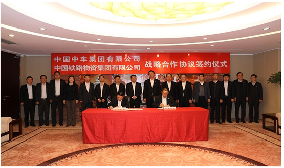 1月28日,中国铁路物资集团有限公司与中国中车集团有限公司在北京签署战略合作协议。中国诚通总裁、党委副书记、中国铁物负责人朱碧新,中国铁物总经理、党委副书记廖家生,中国中车董事长、党委书记刘化龙,总经理、党委副书记孙永才出席签约仪式。中国铁物党委常委、副总经理杜波,中国中车党委常委、执行董事徐宗祥分别代表双方签署战略合作协议。