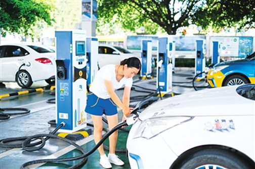 在广西,柳州市政府与当地车企共同发起“政企联动”工作机制,探索出一套“好停、好用、好充”的新能源汽车推广“柳州模式”。图为新能源车主正在柳州一处综合能源服务站为新能源汽车充电。李志杰 邹振远摄