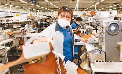 2021年,作为海关特殊监管区域,江苏南通综保区平台功能得到进一步发挥,进出口总值首次突破100亿元,达到104亿元,同比增长30%。图为日前工作人员在南通综保区的一家出口企业加紧生产电动汽车座椅面套。