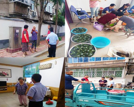平轨公司家属院大妈、大姐纷纷热心帮忙,泡糯米、煮粽叶,山南社区沈阿姨从家里拿来了手套线,中房物业办公室郭瑞家里一岁的小女儿生病了,最后孩子还是让婆婆家人送去医院医治的,郭瑞仍然坚守岗位热心帮忙。