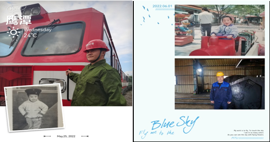 公司员工通过视频、图片等形式展示亲子互动小游戏、亲子手工作品及员工童年对比照。